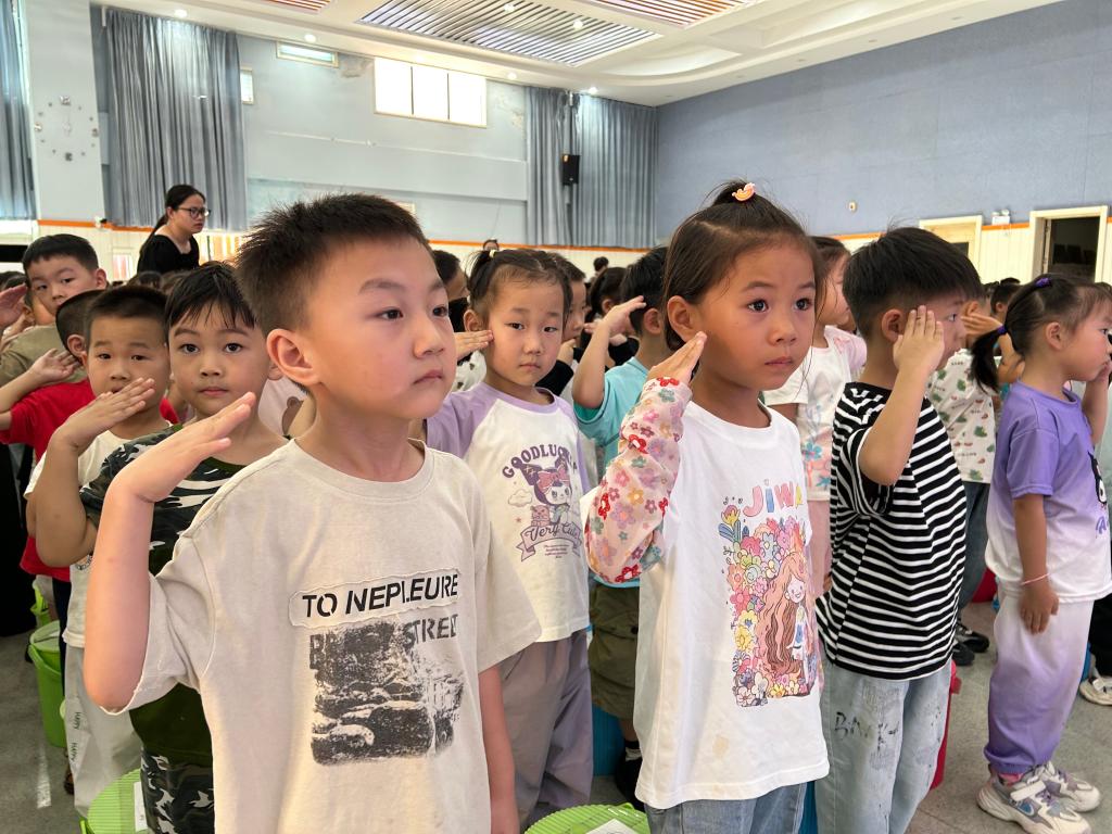 讲座内容充实、形式丰富:通过阅兵视频展示了现代化装备,彰显国家实力,萌发了幼儿对国防科技的兴趣;历史战争动画让幼儿直观感受抗战时期的艰辛岁月,懂得了珍惜今天的幸福生活;王二小的故事和《歌唱二小放牛郎》的学唱环节,让孩子们沉浸式体会到小英雄的勇敢与奉献;最后,孩子们在部队授课军官指导下学习站军姿、敬礼等队列动作,在实践中培养幼儿的爱国意识和责任感。