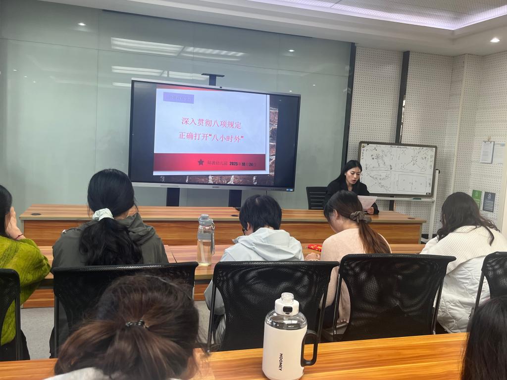 为进一步强化教师师德师风建设,将中央八项规定精神落到实处,引导教师自觉规范 “八小时外” 言行,筑牢教育廉洁防线,2025年10月24日,太仓市高新区娄江幼教中心陆渡幼儿园园长李燕华带领全体教师开展了以《深入贯彻八项规定,正确打开“八小时外”》为主题的师德课程培训。