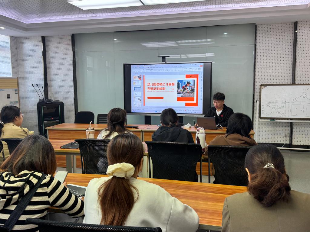 本次研修活动采用理论学习和实践操作的模式,内容紧贴 3-6 岁幼儿身心发展规律。首日开场通过跑酷动作模仿游戏破冰,随后开展少儿跑酷概念、分龄差异、发展价值及安全原则等理论教学,帮助教师筑牢专业基础。实践环节中,授课教师围绕平衡、跳跃、支撑、移动等基础动作进行分龄示范与分组指导,再通过分龄组合练习、问题答疑深化教师理解,最后以赛道模拟考核检验学习成效。次日活动延续实操导向,教师们在反复练习与互动研讨中,熟练掌握了符合幼儿年龄特点的跑酷活动组织技巧,整个研修过程紧凑高效、重点突出。