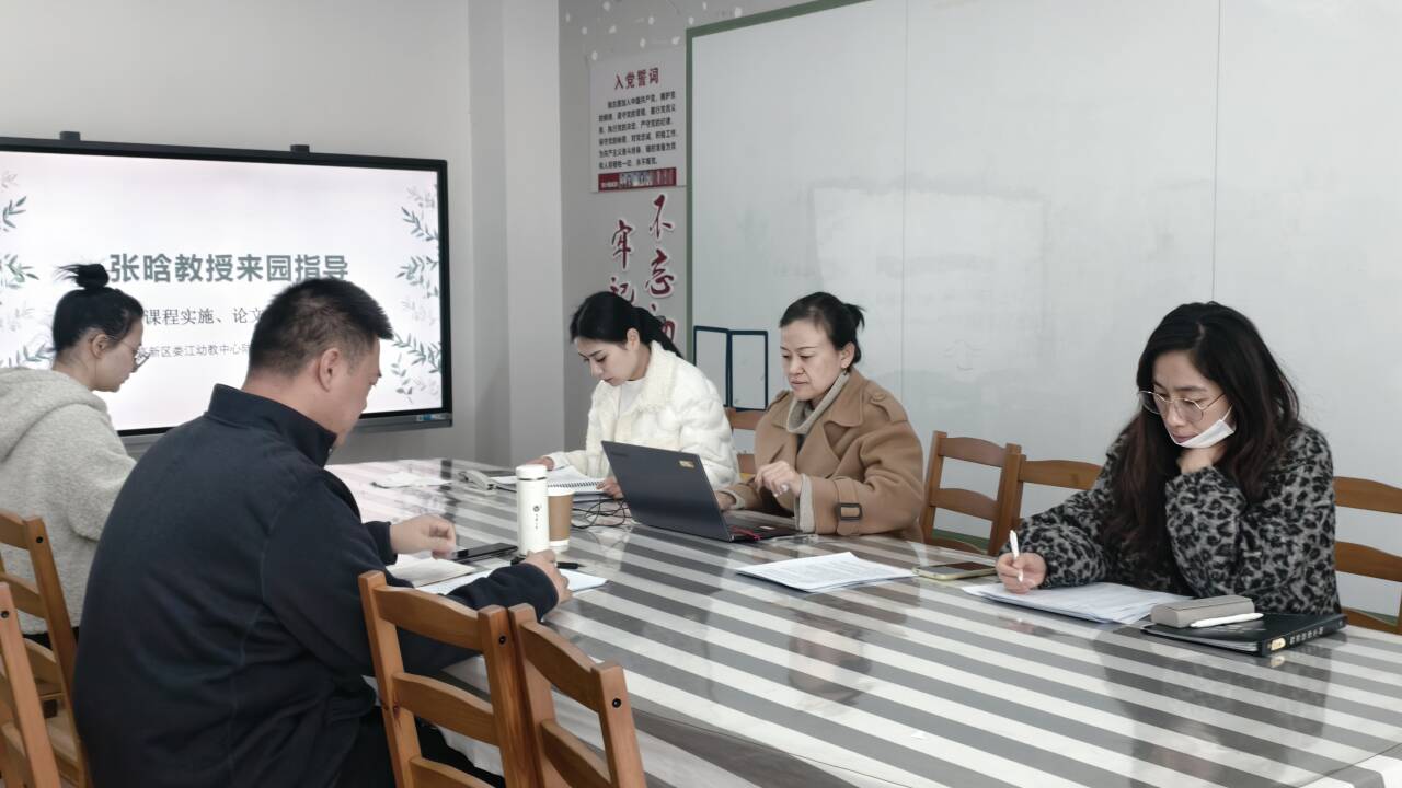 2025年11月27日,太仓市高新区娄江幼教中心陆渡幼儿园在园内102会议室组织开展了课程实施指导培训活动。本次活动特邀苏州幼儿师范高等专科学校张晗教授来园进行专业指导,旨在进一步推进课程建设,优化实施路径,提升课程质量。