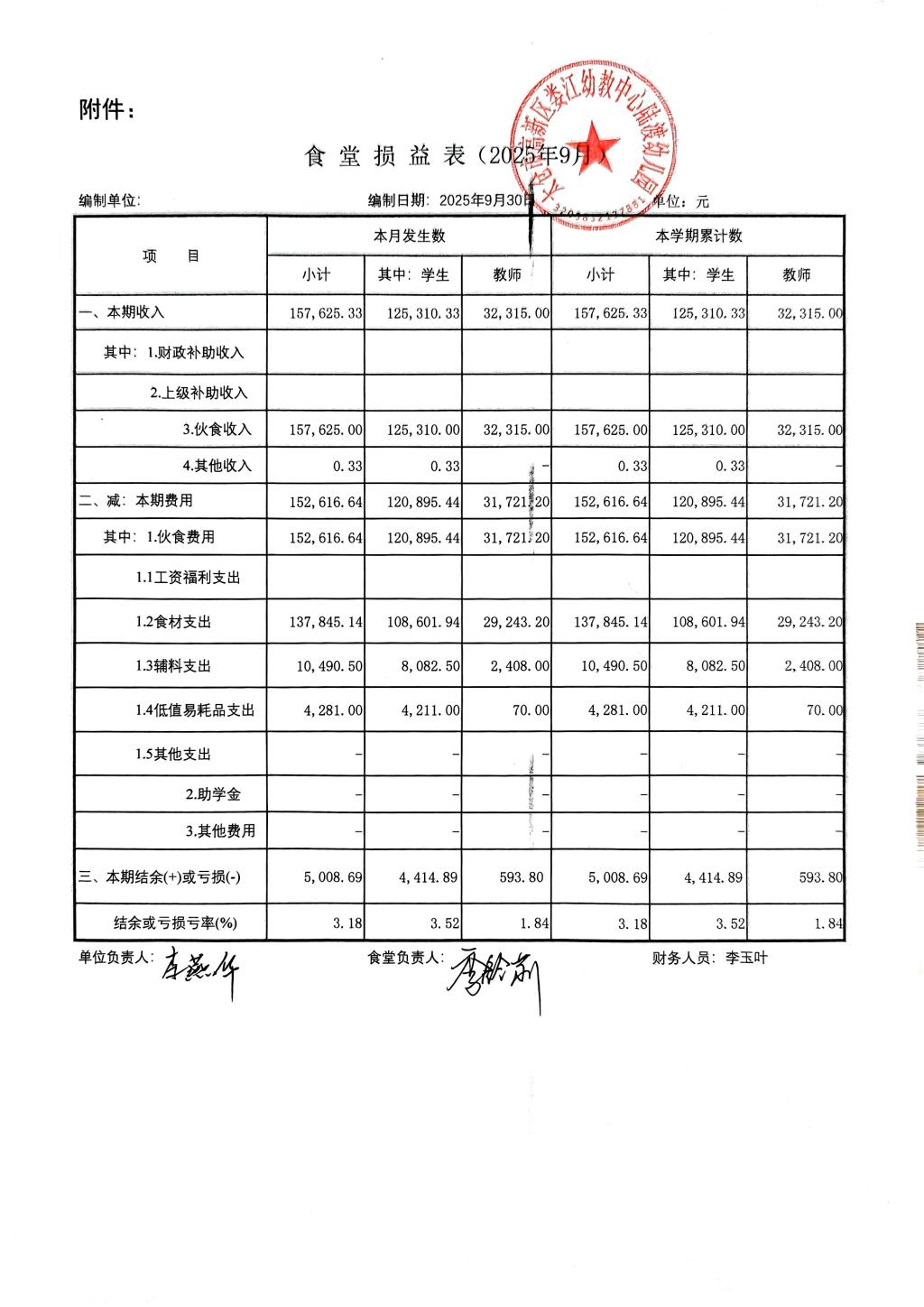陆渡幼儿园幼儿伙食收支情况(9月份)