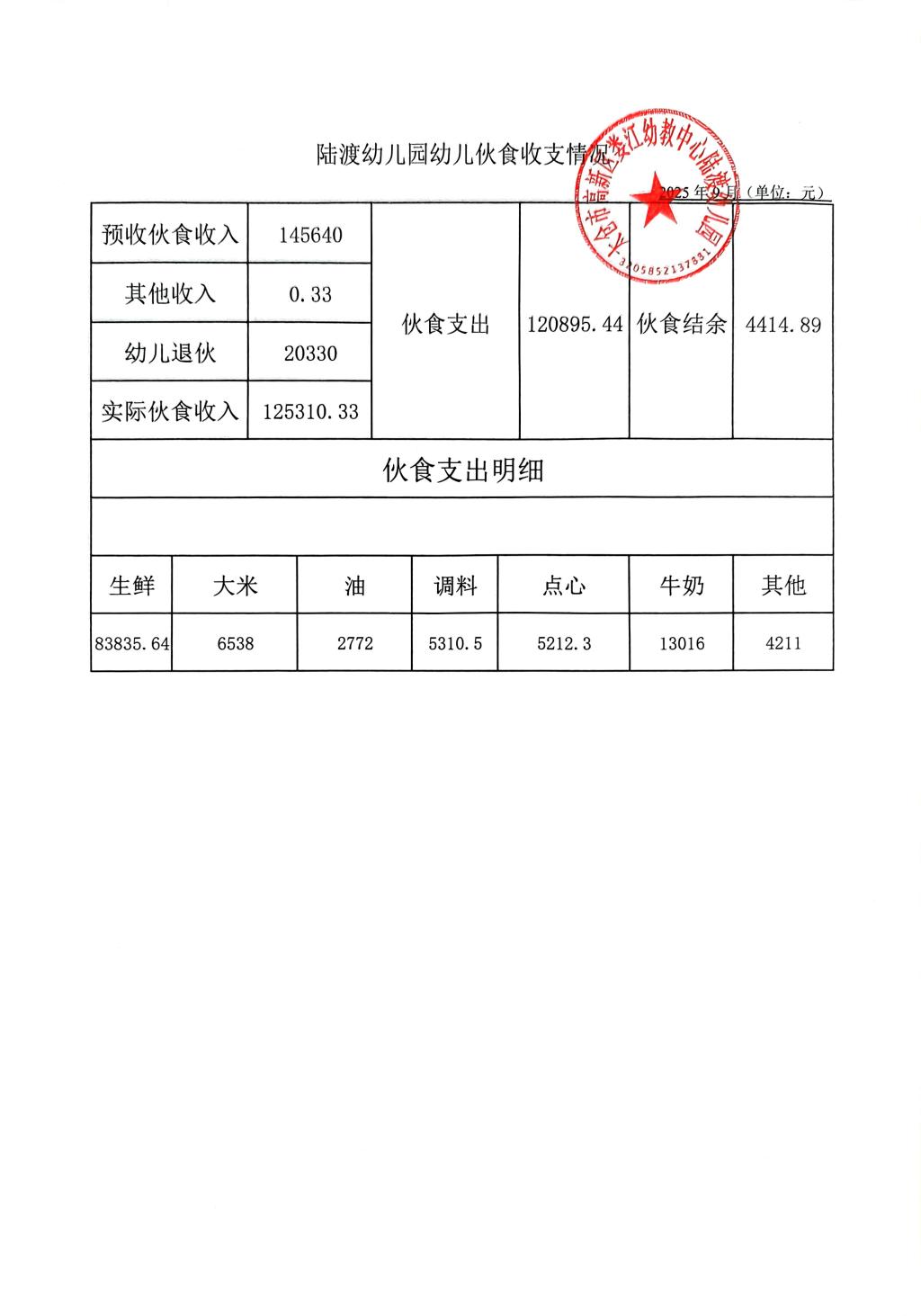 陆渡幼儿园幼儿伙食收支情况(9月份)