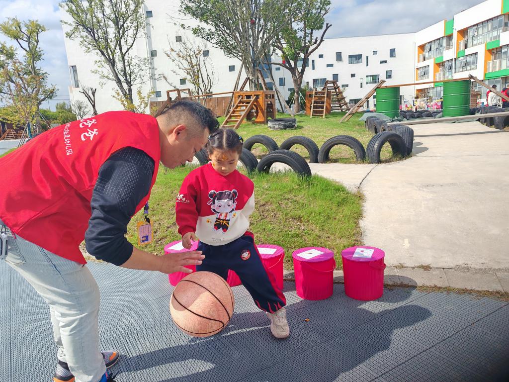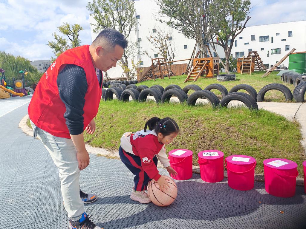 10月底的天气真好,春暖花开的日子里,我们来和爸爸一起玩球吧!我们都需要在圈圈里边拍球边向前走哦!我们都挑战成功啦!