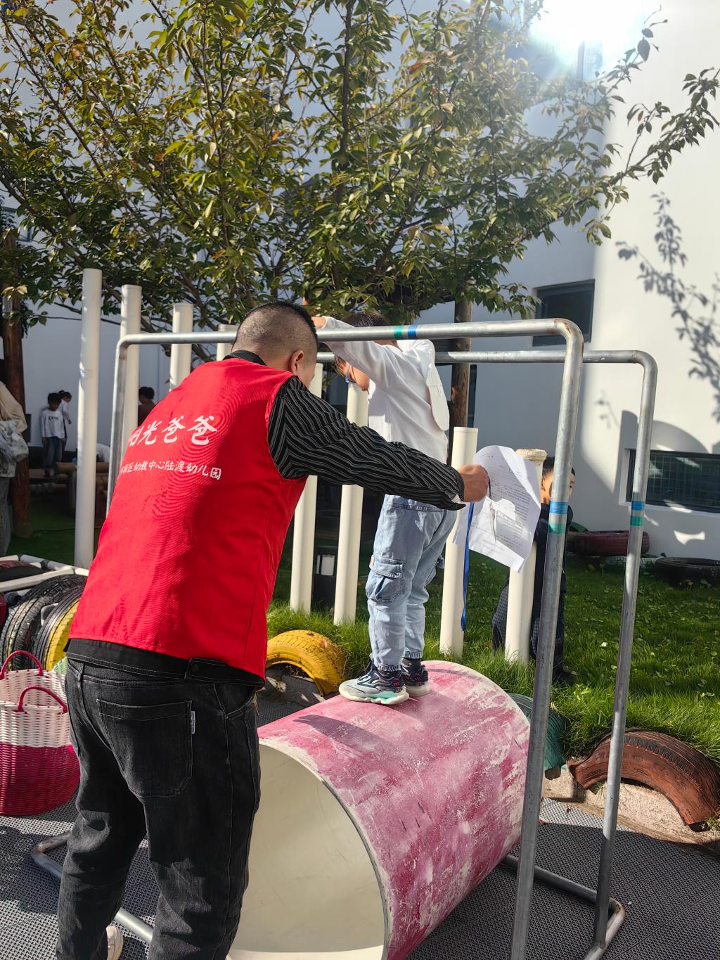 2025年10月29日,彩色滚筒吸引了我和爸爸的目光。我迫不及待跑过去,双手紧紧抓住滚筒两侧的扶手,脚刚踩上去,滚筒就晃悠悠地往前滑,吓得我赶紧喊:“爸爸,快来帮我!” 爸爸笑着走过来,一只手轻轻扶着我的胳膊,另一只手握住滚筒的另一边,“别慌,咱们俩一起用力,脚步保持一致就稳啦。”