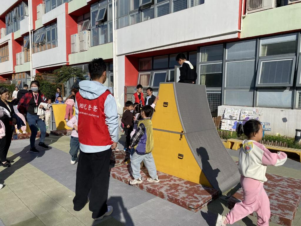 爸爸们的力量给孩子们提供了勇气,孩子们能更加勇敢地去尝试,身体弹跳能力得到了提升。