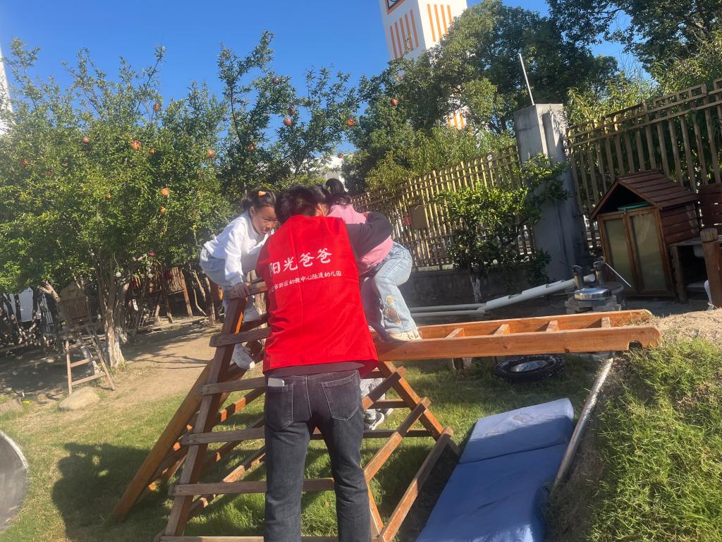12月,爸爸来和我们一起户外锻炼,小山坡上的梯子有点不稳,有爸爸在旁边,我们可以大胆往前走!