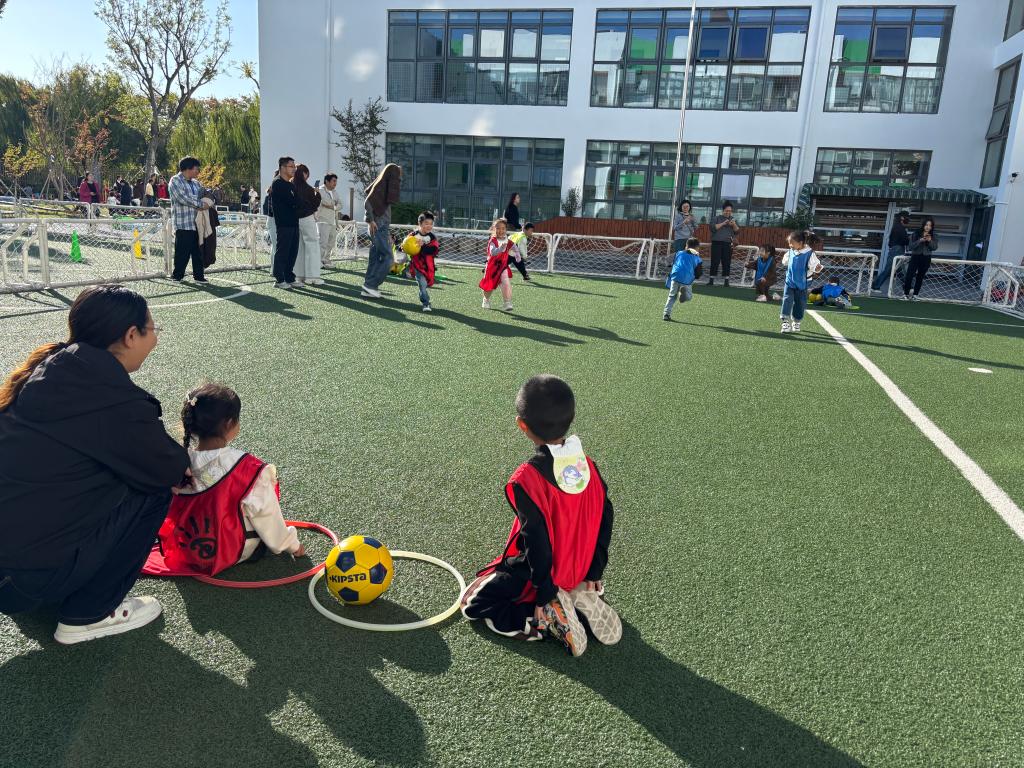 2025年9月16日上午,爸爸来到幼儿园和我们一起踢足球,活动开始前,我们先进行了热身运动,爸爸们也积极参与其中,和我们一起蹦蹦跳跳,现场气氛十分活跃。接着,老师为我们讲解了踢足球的基本规则和技巧,大家都听得全神贯注。正式比赛时,爸爸们分成一队,我们小朋友们分成另一队,在绿茵场上尽情奔跑、追逐,每一次传球、每一次射门都让我们兴奋不已,欢笑声和呐喊声回荡在幼儿园的每一个角落。