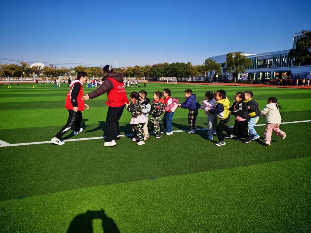 2025年11月20日上午,中3班的小朋友和阳光爸爸一起来到陆渡小学。孩子们和爸爸一起参观了陆渡小学的校史馆、国防科技馆,观看了小学哥哥姐姐的武术表演,在阳光爸爸的带领下还和小学生一起开展了游戏“保卫祖国”。最后爸爸还和小朋友们一起玩了“老鹰抓小鸡”的游戏。